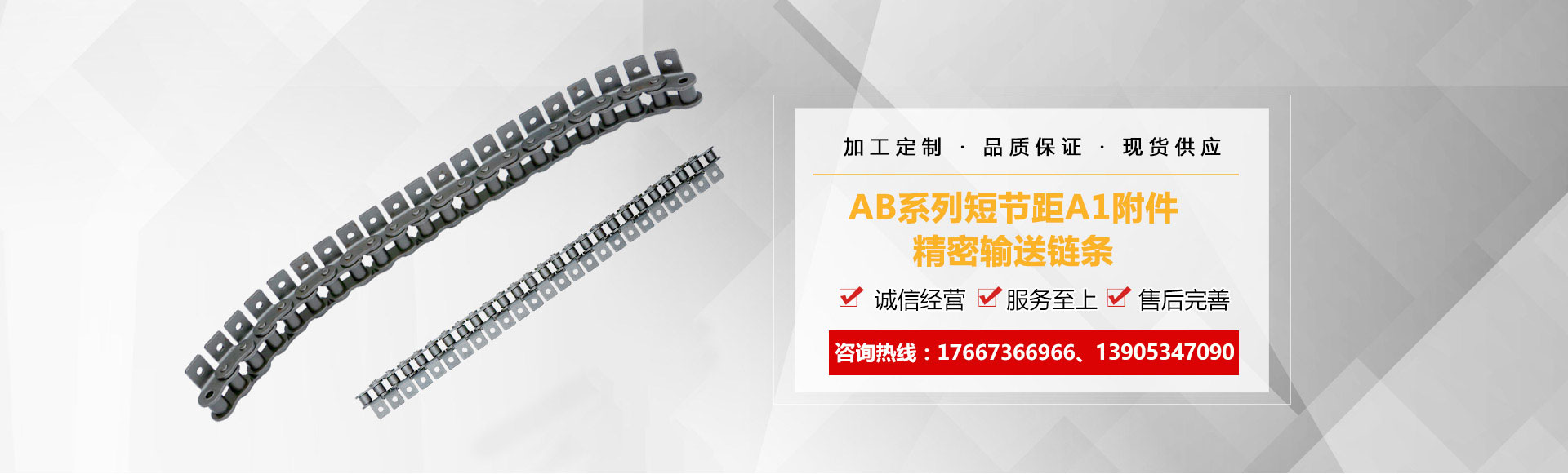 1、鏈條產品有各種不銹鋼、碳鋼輸送鏈條、雙節(jié)距輸送鏈條、空心銷軸鏈條、不銹鋼塑料平頂鏈、不銹鋼精密滾子鏈、特殊工礦輸送鏈、耐高溫輸送鏈條、非標鏈條、彎板非標鏈條、大節(jié)距輸送鏈條、各種鏈條用滾子(材質碳鋼、不銹鋼)等。